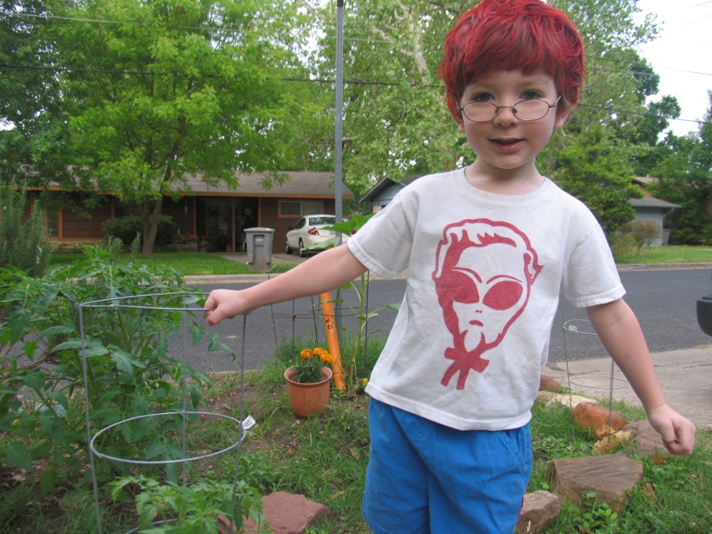 Julian had "Crazy Hair Day" at school and we obliged with red hairspray. He had a pink bath that night...