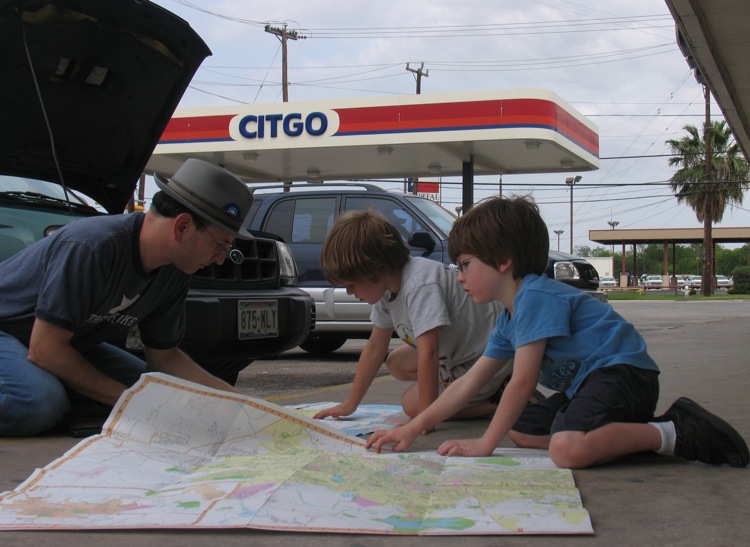 The boys pulled the maps from the car